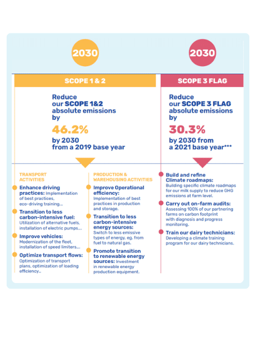 As a reminder, the Lactalis Group’s environmental commitments were validated by the SBTi in July 2024. We aim to reduce our GHG emissions by 30% for Scope 3 and 46% for Scopes 1 and 2 by 2030. This places us on a trajectory aligned with limiting global warming to below +2°C by 2100, in line with the Paris Agreement.